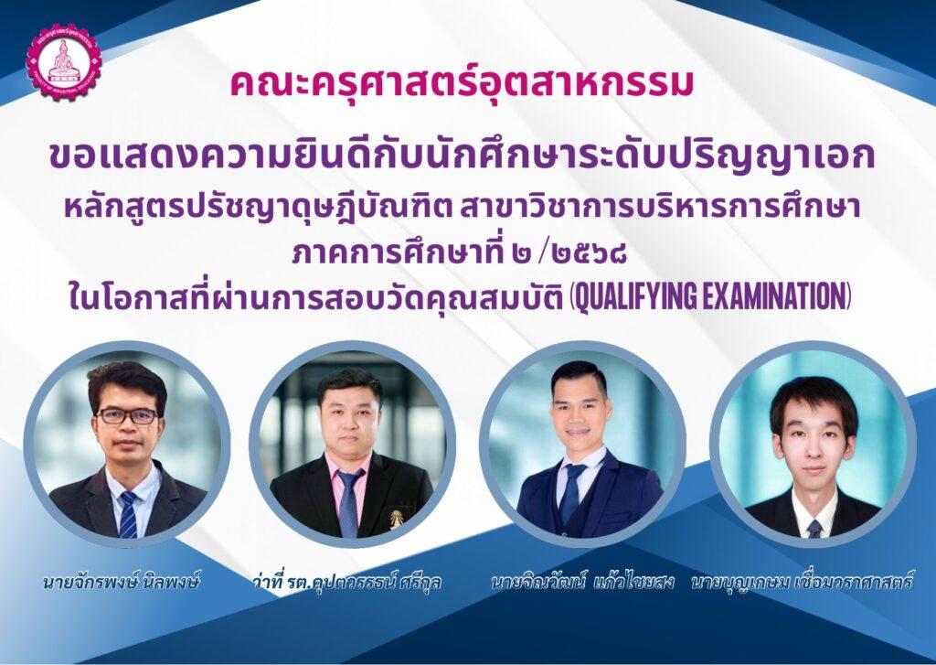 ประกาศรายชื่อผู้มีสิทธิ์สอบวัดคุณสมบัติ (Qualifying Examination) ระดับปริญญาเอก