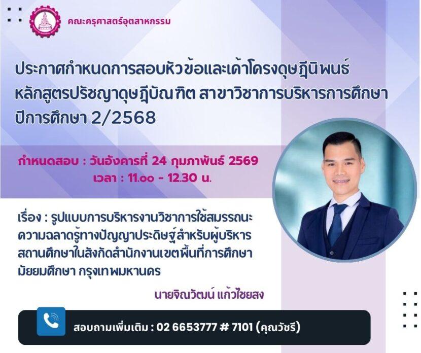 คณะครุศาสตร์อุตสาหกรรม ประกาศกำหนดการสอบหัวข้อและเค้าโครงดุษฎีนิพนธ์ หลักสูตรปรัชญาดุษฎีบัณฑิต สาขาวิชาการบริหารการศึกษา ภาคการศึกษาที่ […]