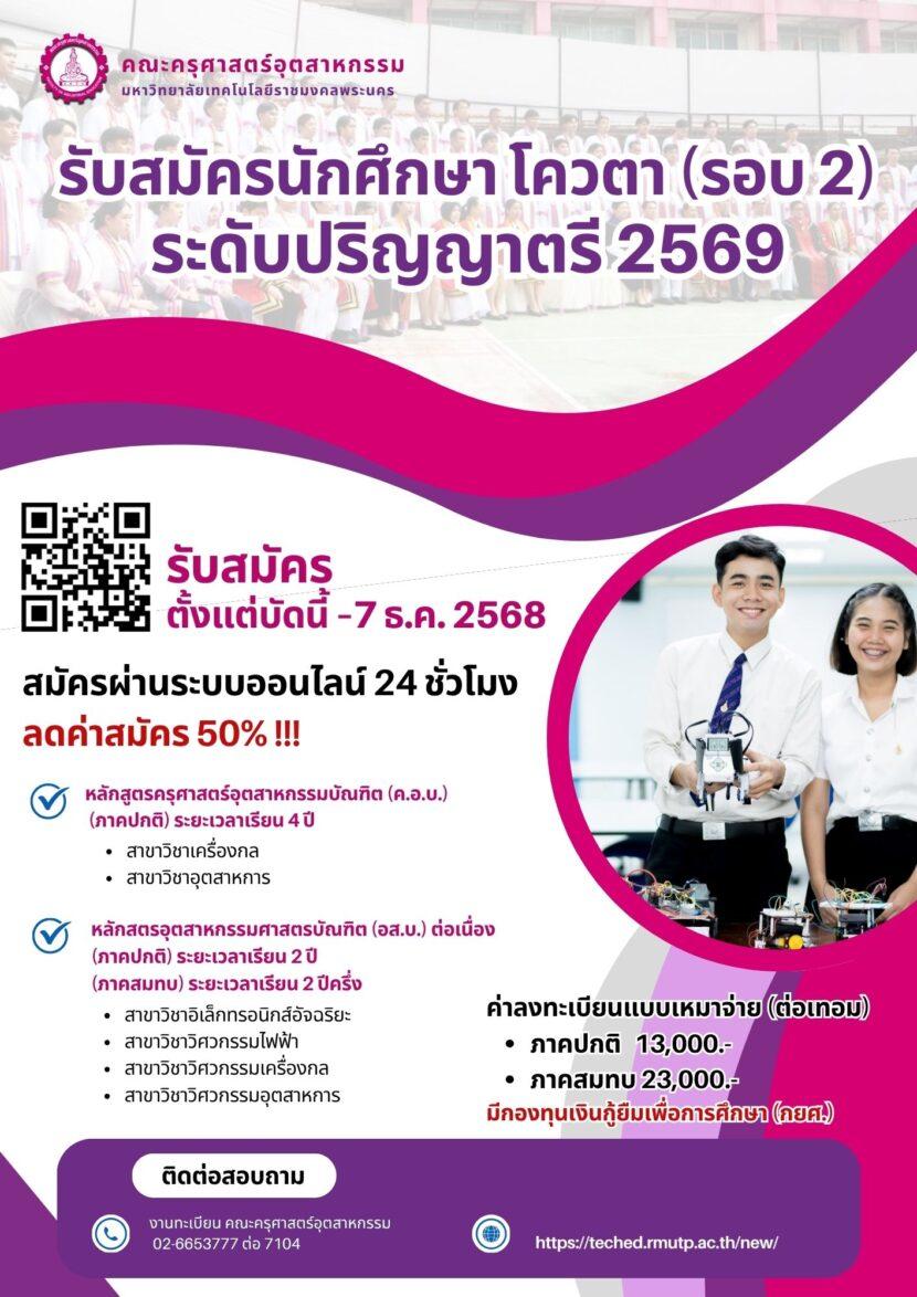 คณะครุศาสตร์อุตสาหกรรม รับสมัครนักศึกษาใหม่ ระดับปริญญาโท/ระดับปริญญาเอก ภาคการศึกษาที่ 1/2569 […]
