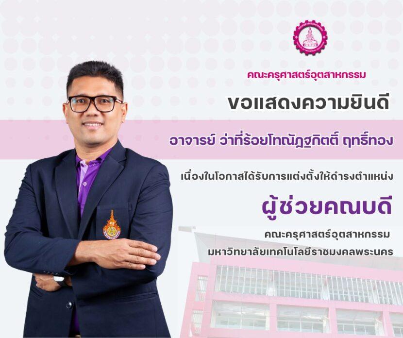 ขอแสดงความยินดีกับ อาจารย์ ว่าที่ร้อยโทณัฏฐกิตติ์ ฤทธิ์ทอง เนื่องในโอกาสได้รับการแต่งตั้งบุคคลให้ดำรงตำแหน่ง ผู้ช่วยคณบดี