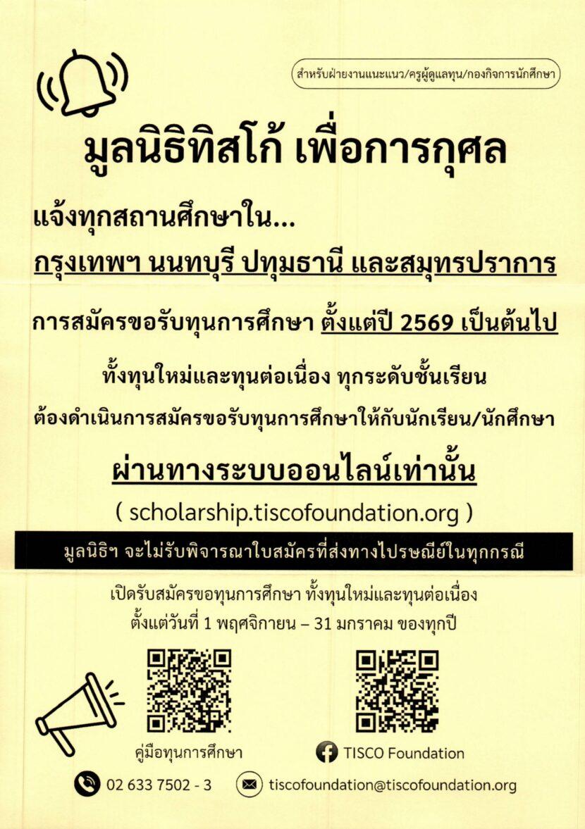 คณะครุศาสตร์อุตสาหกรรม ประชาสัมพันธ์การรับสมัครขอรับทุนการศึกษาของมูลนิธิทิสโก้เพื่อการกุศล ประจำปี2569 👉นักศึกษาสามารถสมัครได้ตั้งแต่วันที่1 พฤศจิกายน […]