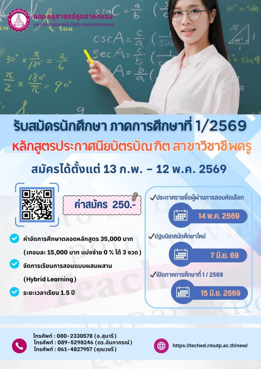คณะครุศาสตร์อุตสาหกรรม เปิดรับสมัครนักศึกษาใหม่หลักสูตรประกาศนียบัตรวิชาชีพครู (ป.บัณฑิต) ปีการศึกษา 1/2569 […]
