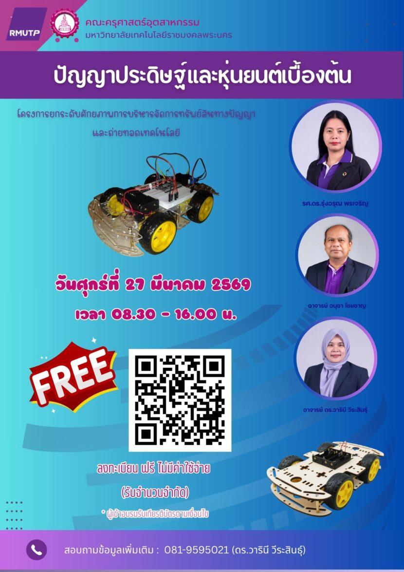 โครงการยกระดับศักยภาพการบริหารจัดการทรัพย์สินทางปัญญาและถ่ายทอดเทคโนโลยี “ปัญญาประดิษฐ์และหุ่นยนต์เบื้องต้น”