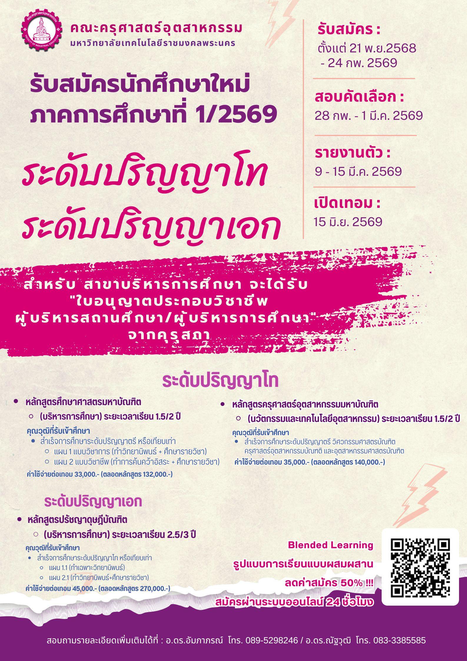 คณะครุศาสตร์อุตสาหกรรม รับสมัครนักศึกษาใหม่ ระดับปริญญาโท/ระดับปริญญาเอก ภาคการศึกษาที่ 1/2569