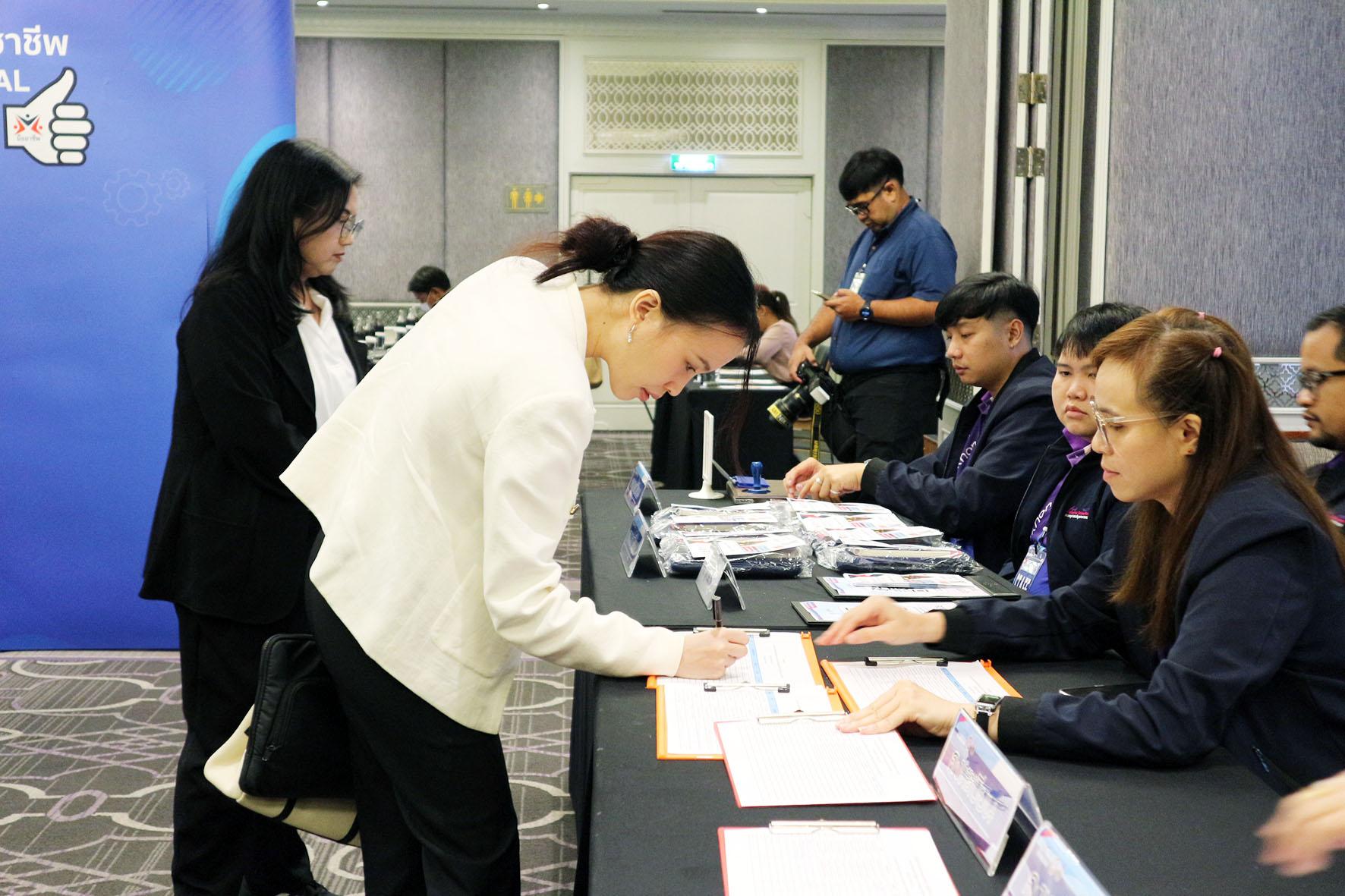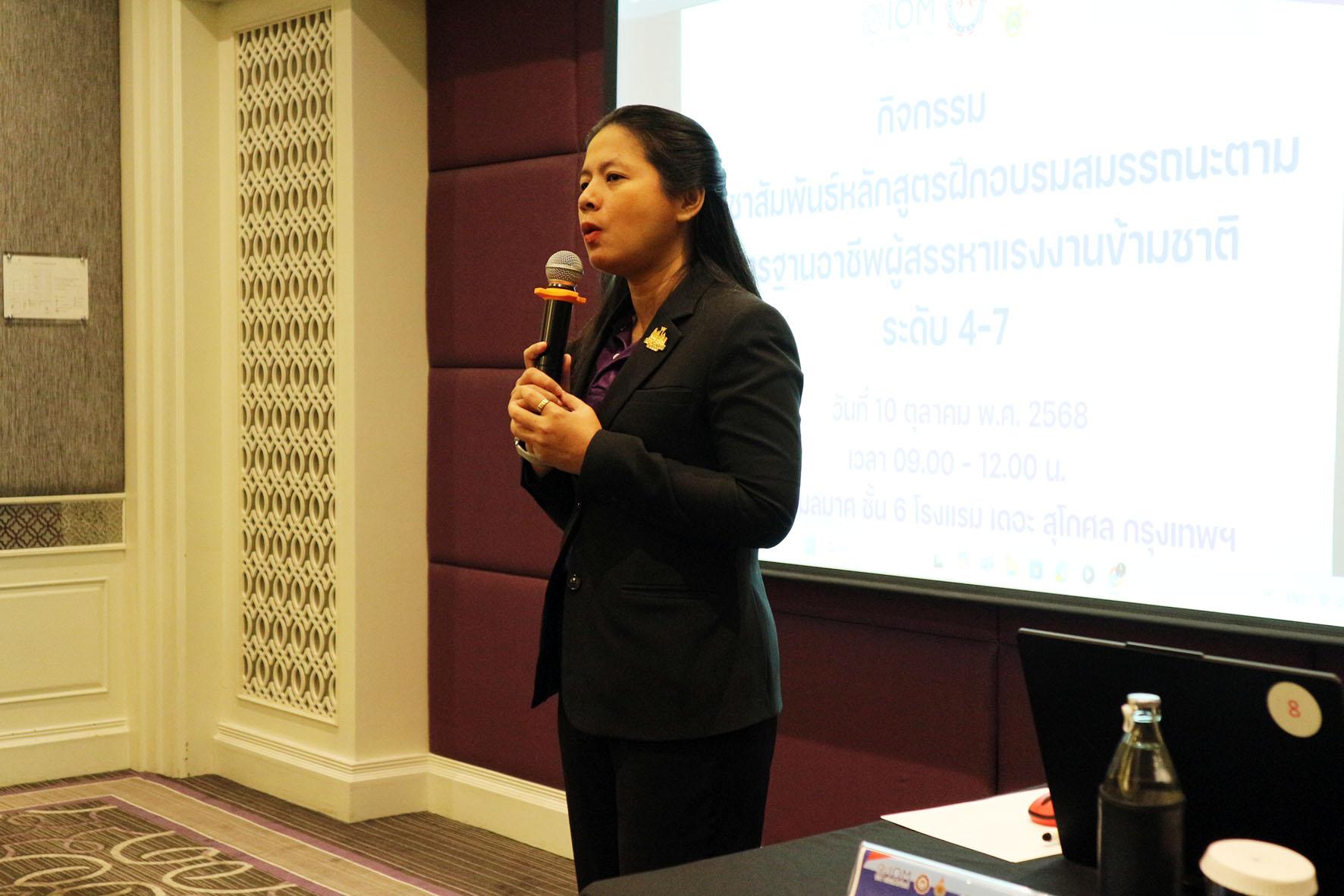 โดย รองศาสตราจารย์ ดร.รุ่งอรุณ พรเจริญ คณบดีคณะครุศาสตร์อุตสาหกรรม ในฐานะประธานที่ปรึกษาโครงการ กล่าวรายละเอียดของมาตรฐานอาชีพและคุณวุฒิวิชาชีพ อาชีพผู้สรรหาแรงงานข้ามชาติ ชี้แจงรายละเอียดของหลักสูตรฝึกอบรมระยะสั้นตามมาตรฐานอาชีพ อาชีพผู้สรรหาแรงงานข้ามชาติ และเชิญชวนบุคลากรในอาชีพเข้าร่วมฝึกอบรม กิจกรรมนี้ได้รับความสนใจจากบุคลากรในสายงานอย่างล้นหลาม เนื่องจากเป็นโอกาสสำคัญในการพัฒนาความรู้และทักษะตามมาตรฐานอาชีพ ณ โรงแรม เดอะ สุโกศล กรุงเทพ เมื่อวันที่ 10 ตุลาคม 2568