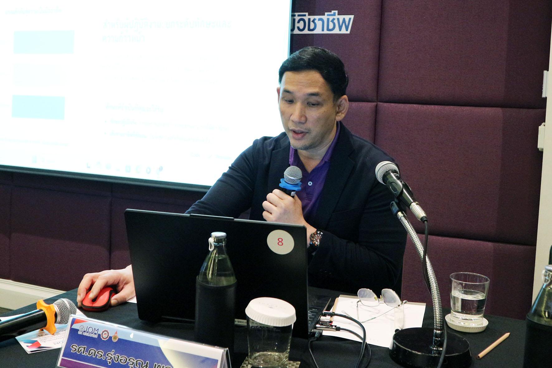 คณะฯร่วมกับสถาบันคุณวุฒิวิชาชีพ (องค์การมหาชน)และ IOM, UN Migration จัดการประชุมประชาสัมพันธ์หลักสูตรฝึกอบรมสมรรถนะตามมาตรฐานอาชีพ ผู้สรรหาแรงงานข้ามชาติ ระดับ 4-7