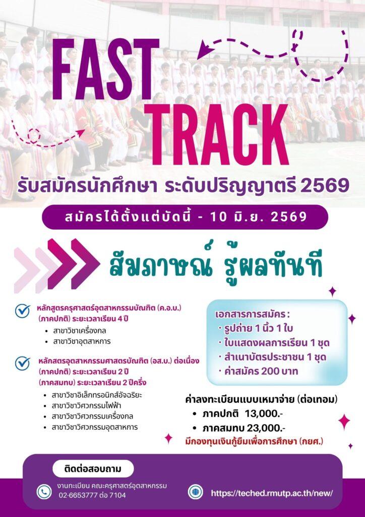 คณะครุศาสตร์อุตสาหกรรม รับสมัครนักศึกษาเพื่อเข้าศึกษาต่อระดับปริญญาตรี ประเภท Fast Track ประจำปีการศึกษา 2569