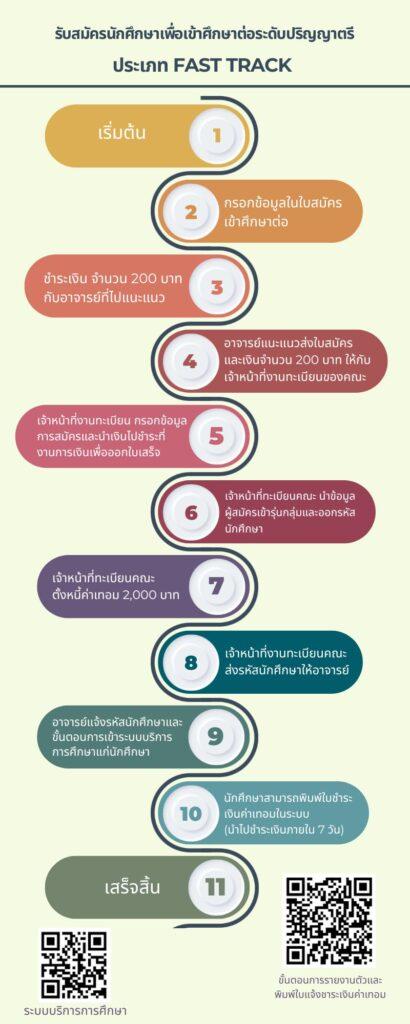 - ขั้นตอนการรับสมัครนักศึกษา ประเภท Fast Track (กรณีที่อาจารย์ไปแนะแนวหรือรับสมัครที่โรงเรียน)