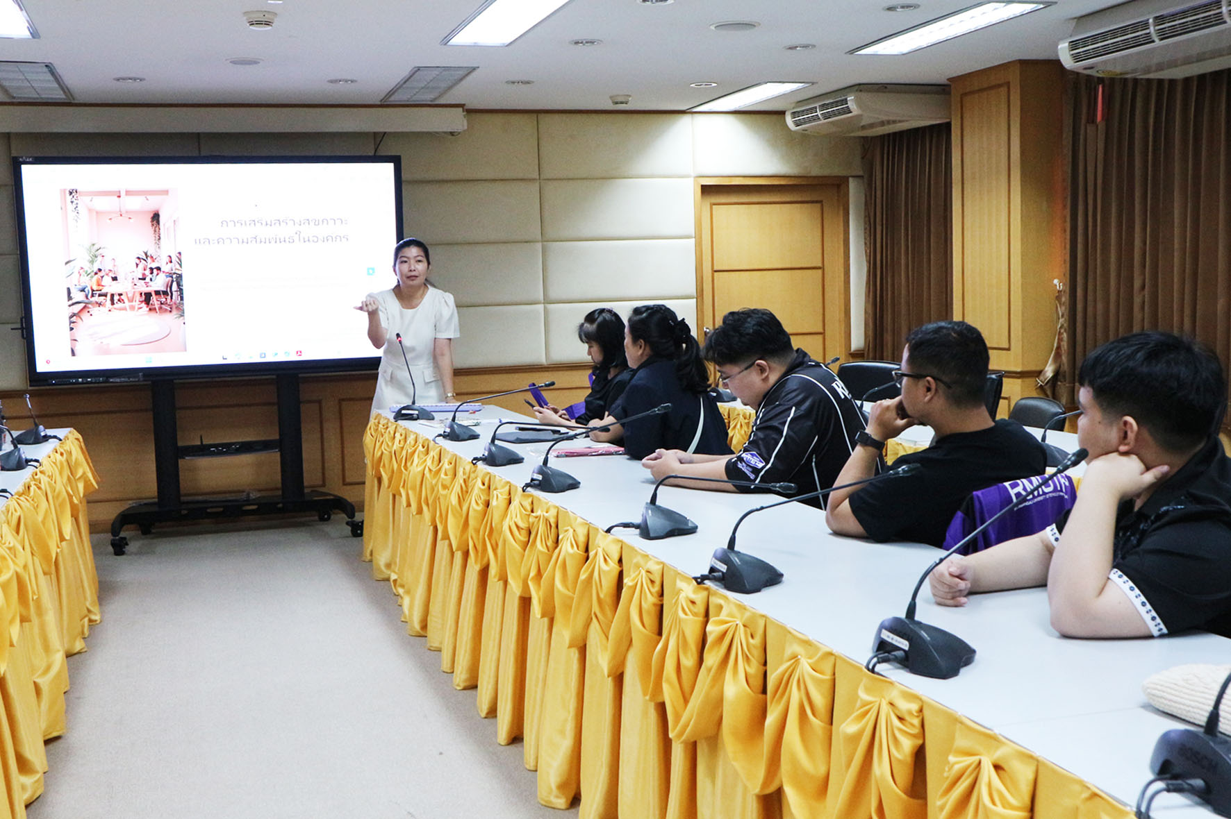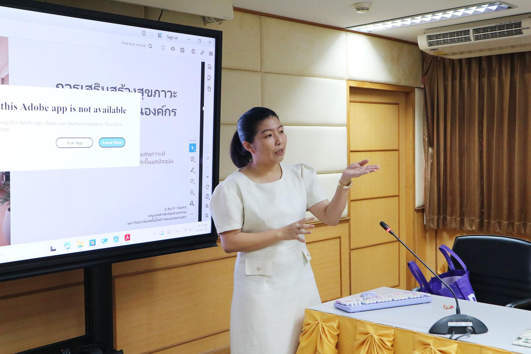 คณะครุศาสตร์อุตสาหกรรม จัดโครงการการเสริมสร้างสุขภาวะบุคลากรและบริการที่ดีสู่มหาวิทยาลัยแห่งความสุข โดยมี รองศาสตราจารย์ ดร.รุ่งอรุณ พรเจริญ คณบดีคณะครุศาสตร์อุตสาหกรรม กล่าวเปิดงาน มีอาจารย์สุนารี รชตรุจ เป็นวิทยากรบรรยายในห้วข้อ “การเสริมสร้างสุขภาวะและความสัมพันธ์ในองค์กร” ให้แก่เจ้าหน้าที่สายสนับสนุน เพื่อเสริมสร้างสภาพแวดล้อมการทำงานที่ส่งเสริมสุขภาวะในทุกมิติ ทั้งร่างกาย จิตใจ และสังคม ถือเป็นปัจจัยสำคัญในการพัฒนาทีมงาน ด้วยการสนับสนุนทักษะการสื่อสารที่เหมาะสม และการสร้างบรรยากาศที่เต็มไปด้วยความเข้าใจ ความไว้วางใจ และความร่วมมือ ทีมงานจะสามารถปรับเปลี่ยนวิธีการทำงานร่วมกันได้อย่างมีประสิทธิภาพ ทำให้เกิดผลลัพธ์ที่ดีที่สุดในการทำงานและสร้างความสุขในที่ทำงานอย่างยั่งยืน มีผู้เข้าร่วมจำนวน 21 คน ณ ห้องประชุมดิเรกฤทธิ์ คณะครุศาสตร์อุตสาหกรรม เมื่อวันที่ 18 ธันวาคม 2568