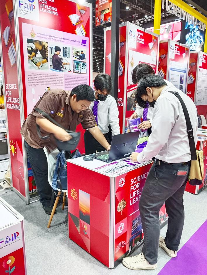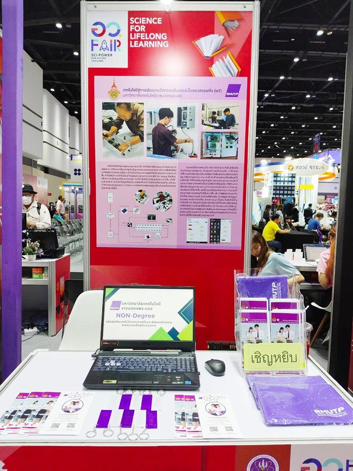 คณะครุศาสตร์อุตสาหกรรม เข้าร่วมงานมหกรรม อว.แฟร์ “SCI POWER FOR FUTURE THAILAND 2024” ซึ่งจัดขึ้นโดยกระทรวงการอุดมศึกษา วิทยาศาสตร์ วิจัยและนวัตกรรม (อว.) โซนเปิดโลกแห่งการเรียนรู้ตลอดชีวิต SCIENCE FOR LIFELONG LEARNING ในหัวข้อ “อินเตอร์เน็ตของสรรพสิ่งและพัฒนานวัตกรรมสำหรับการทำผู้ประกอบการ” มี ดร.วารินี วีระสินธุ์ อาจารย์ประจำสาขาวิชาวิศวกรรมอิเล็กทรอนิกส์ฯ และนักศึกษา ได้แก่ นายสัจพจน์ บุญยเลขา, นายศิขรินทร์ ช่อผูก, นายภัทรดนัย เอี่ยมเปา และนายศุภณัฐ วิเชียรรัตน์ ร่วมจัดบูธ โดยมีวัตถุประสงค์เพื่อยกระดับทักษะองค์ความรู้ด้านวิทยาศาสตร์และนวัตกรรมแก่ประชาชนไทยให้มีมาตรฐานทัดเทียมนานาชาติ พร้อมแสดงศักยภาพของไทยในการพัฒนาเศรษฐกิจด้วยการอุดมศึกษา วิทยาศาสตร์ วิจัยและนวัตกรรม