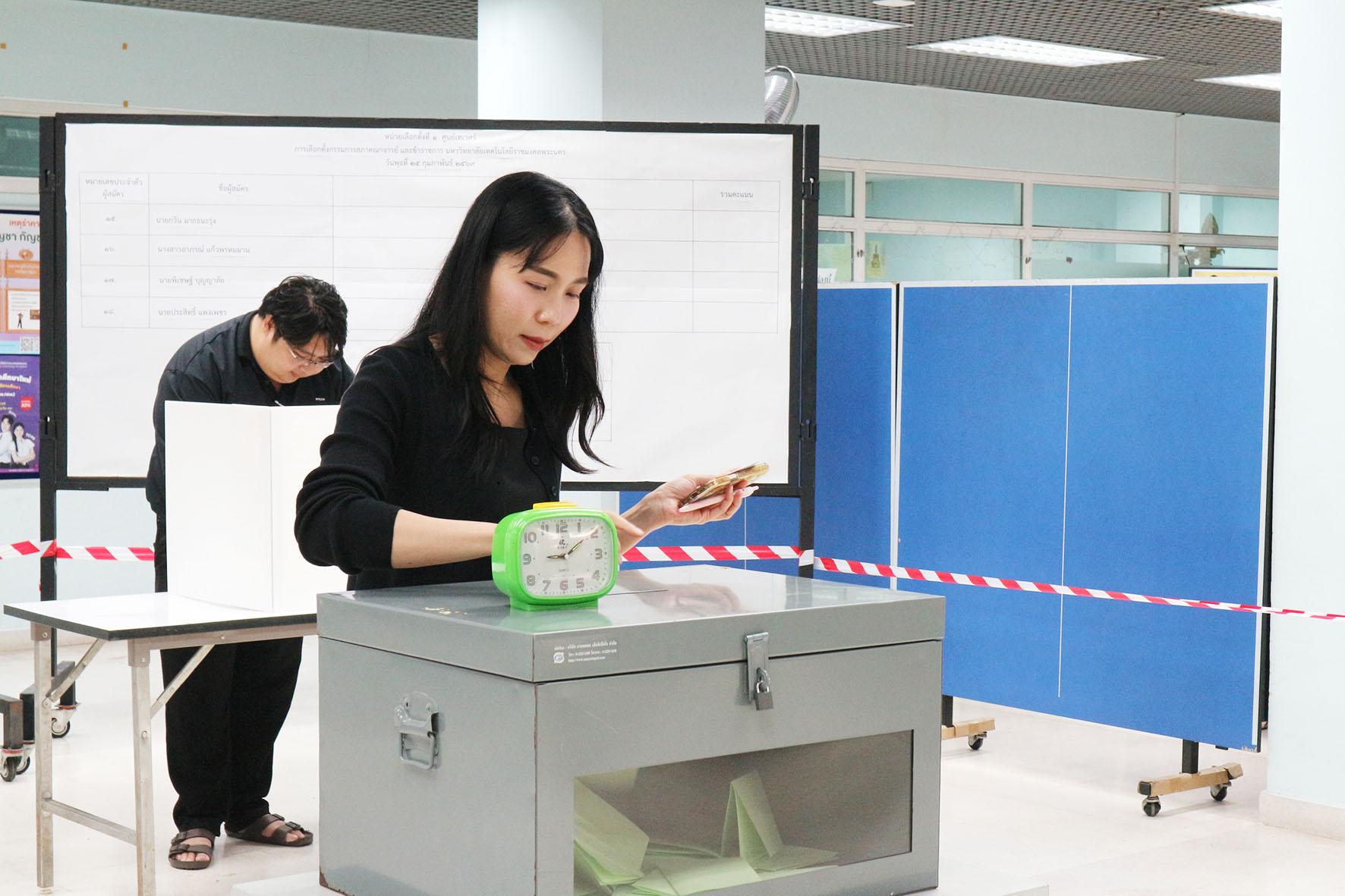 รองศาสตราจารย์ ดร.รุ่งอรุณ พรเจริญ คณบดีคณะครุศาสตร์อุตสาหกรรม เป็นประธานเปิดศูนย์การเลือกตั้งกรรมการสภาคณาจารย์และข้าราชการ ประจำศูนย์เทเวศร์ ณ หน่วยเลือกตั้งที่ 1 บริเวณโถงชั้น1 คณะครุศาสตร์อุตสาหกรรม เลือกตั้งล่วงหน้า ในวันที่ 18 กุมภาพันธ์ พ.ศ.2569 และเลือกตั้งวันจริงในวันที่ 25 กุมภาพันธ์ พ.ศ.2569