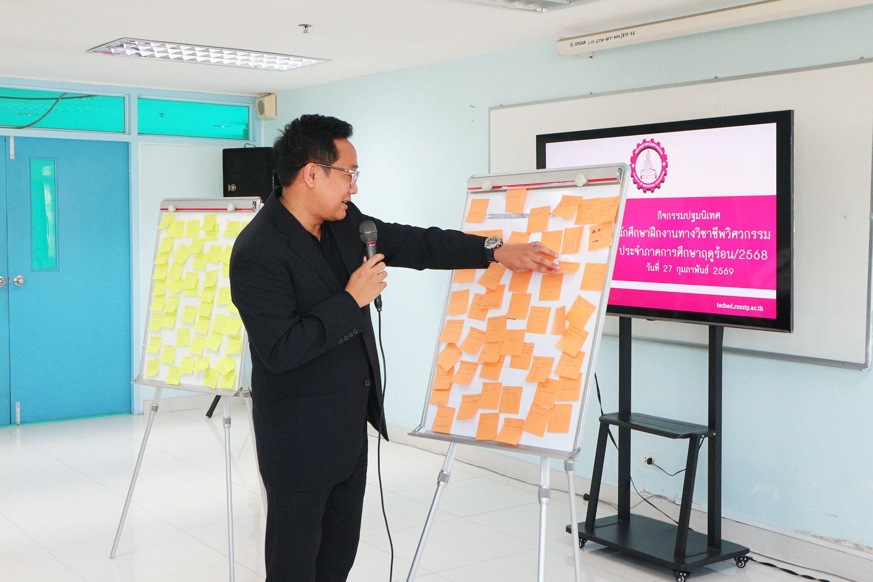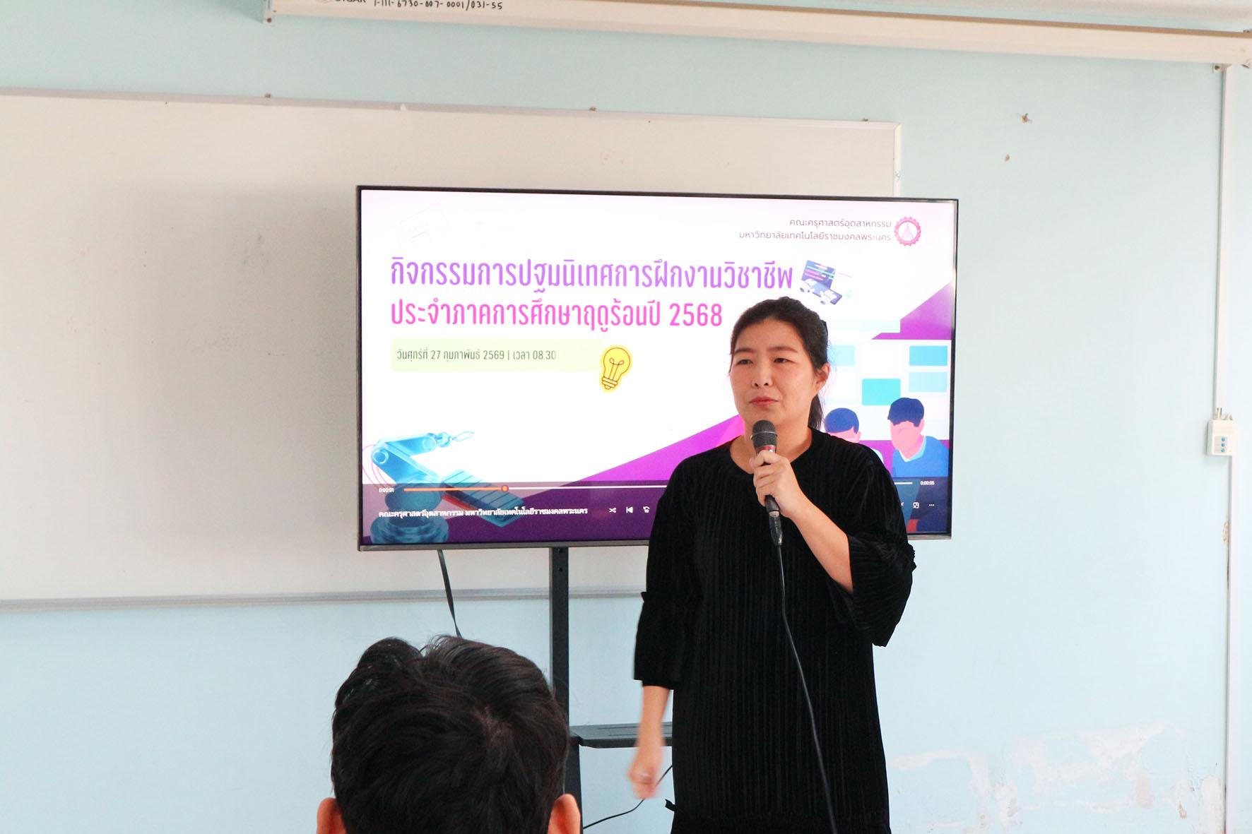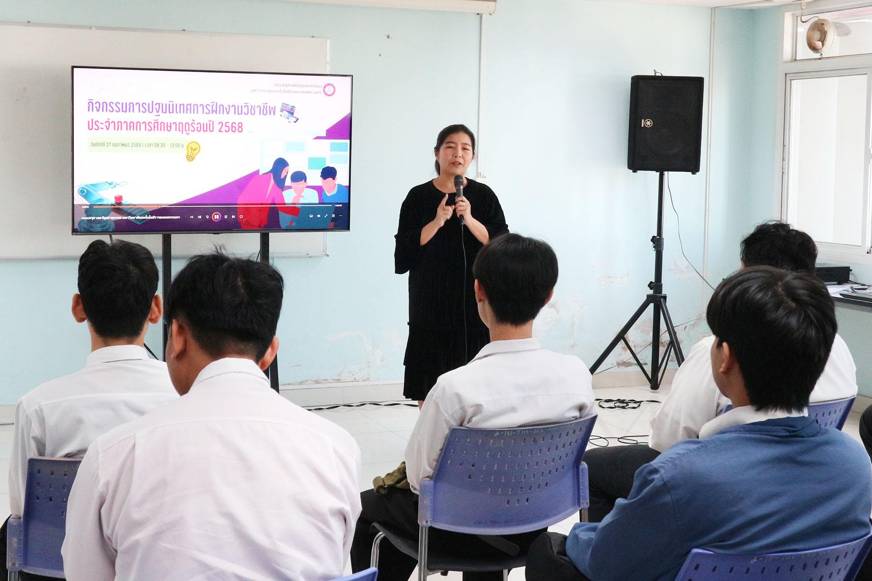 คณะครุศาสตร์อุตสาหกรรม ฝ่ายวิชาการและวิจัย โดย อาจารย์ ดร.อัมภาภรณ์ พีรวณิชกุล รองคณบดีฝ่ายวิชาการและวิจัยเป็นประธานกล่าวเปิดงาน กิจกรรมปฐมนิเทศการฝึกงานวิชาชีพ ระดับปริญญาตรี ประจำภาคการศึกษาฤดูร้อน 2568 ภายในงานมีกิจกรรมการเรียนรู้ในประเด็นวิธีการสอน แนะนำรายวิชา การเขียนรายงานฝึกงานวิชาชีพ รวมถึงปัญหา/อุปสรรคที่น่าจะพบเจอพร้อมวิธีการไขปัญหาในระหว่างการสอนจากการไปฝึกประสบการณ์วิชาชีพครูแและฝึกสหกิจศึกษา ณ ห้องประชุมกรมหลวง คณะครุศาสตร์อุตสาหกรรม เมื่อวันที่ 27 กุมภาพันธ์ 2569